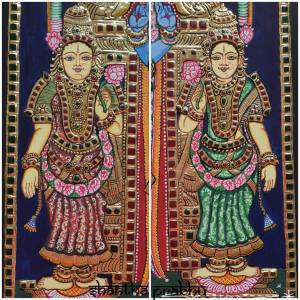 All that glitters is gold in this painting which bears minute details and intricacy in depicting the deities, the Mandapam, the Yaazhis, the accessories and the attire.