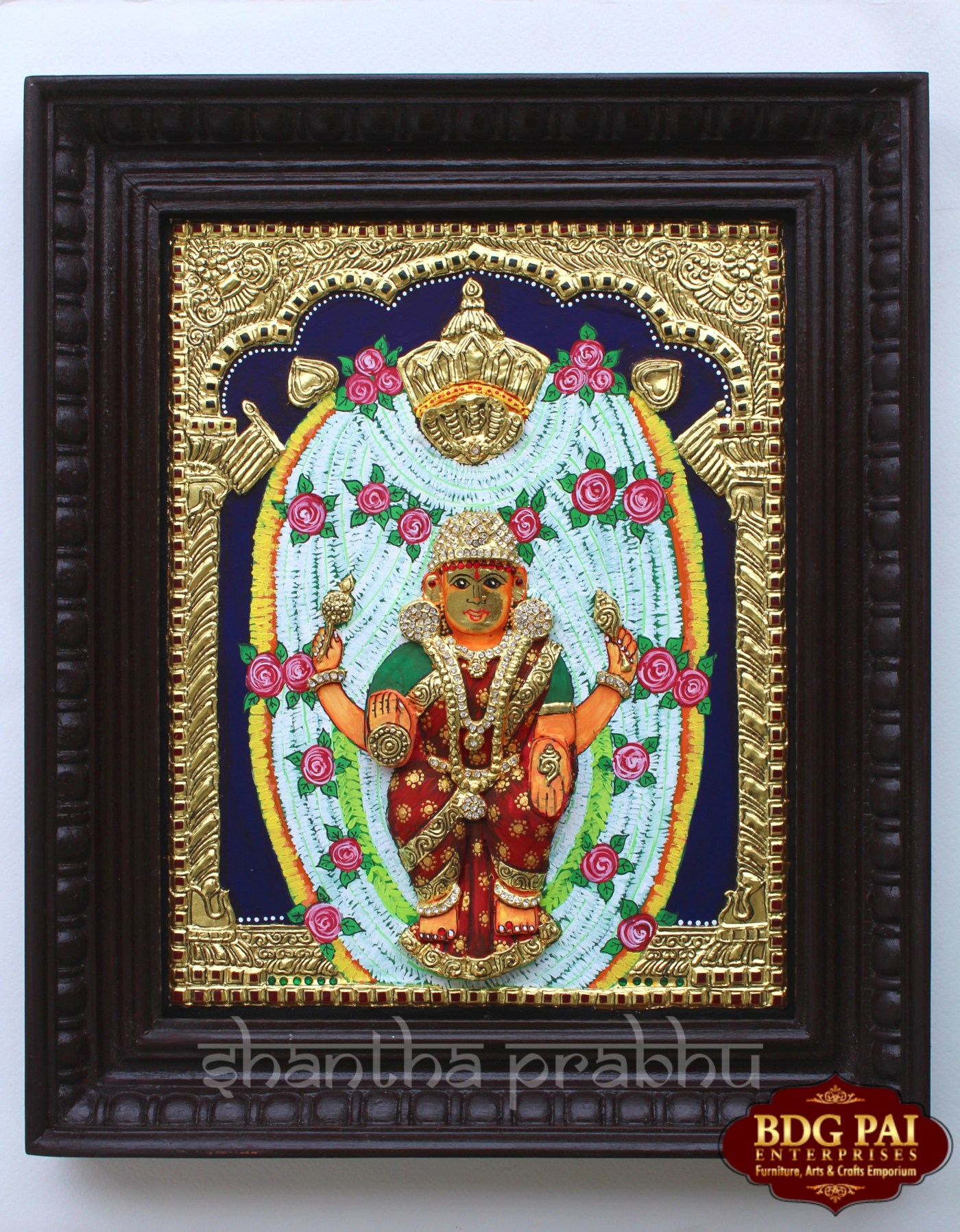 This is a 3D Super Embossed Thanjavur Painting of Kateel Durgaparameshwari Devi.