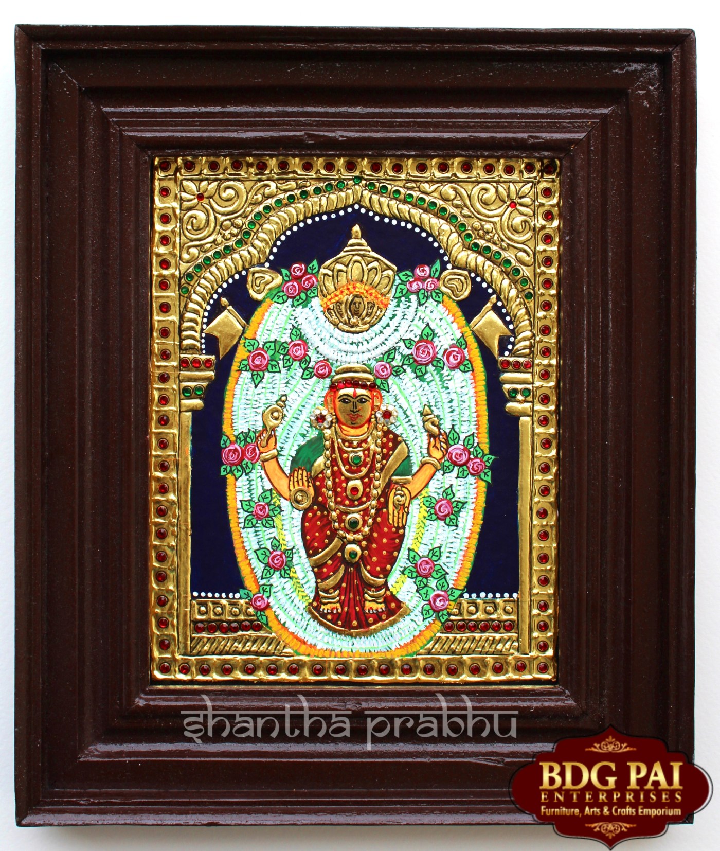 The painting has been made on a handmade Tanjore Board, gemset with semi precious jaipore stones and gilded with authentic 22ct gold leaf. The painting has an option of a pure chettinad teak wood frame. The painting comes with a signed authenticity certificate.