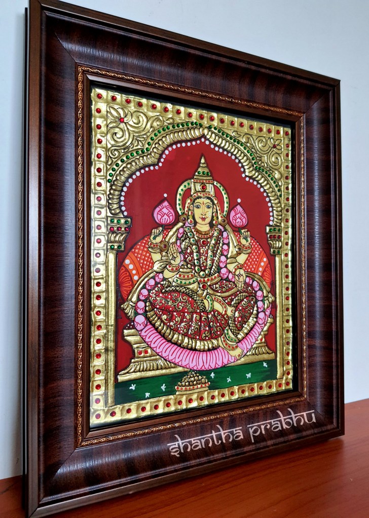 This is a 2D Tanjore Painting of Goddess Lakshmi