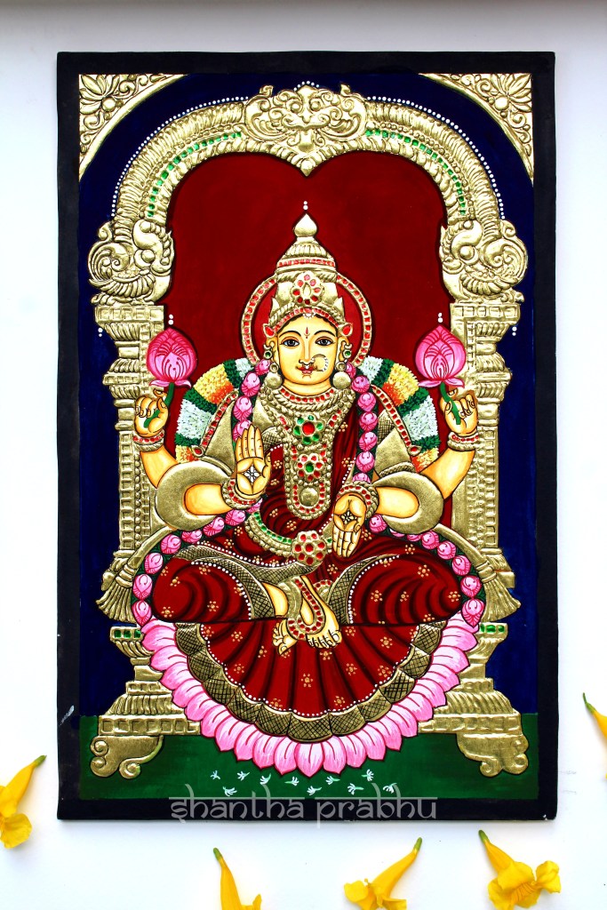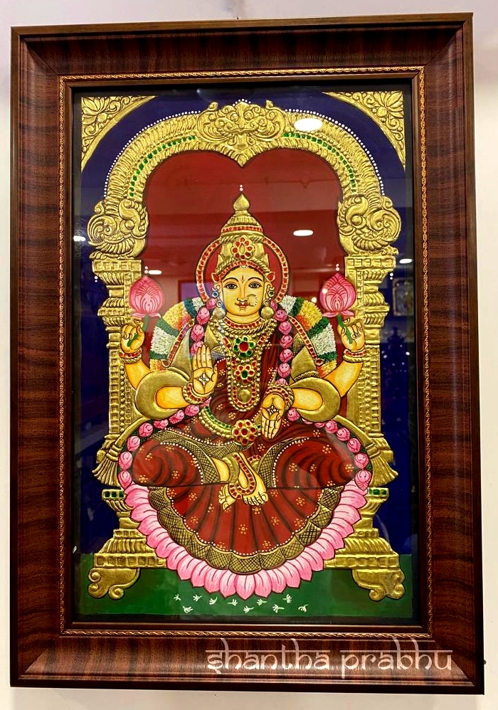 This is a 2D Thanjavur Painting of Goddess Lakshmi