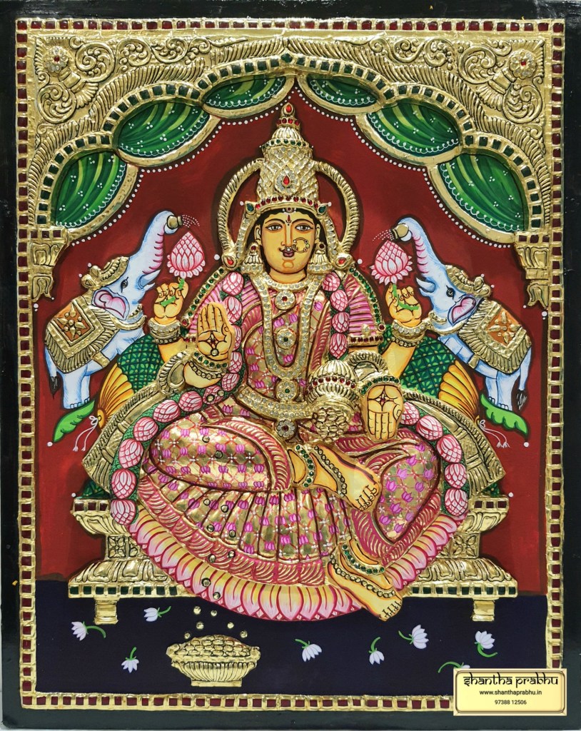 This is a 2D Tanjore Painting of Goddess GajaLakshmi