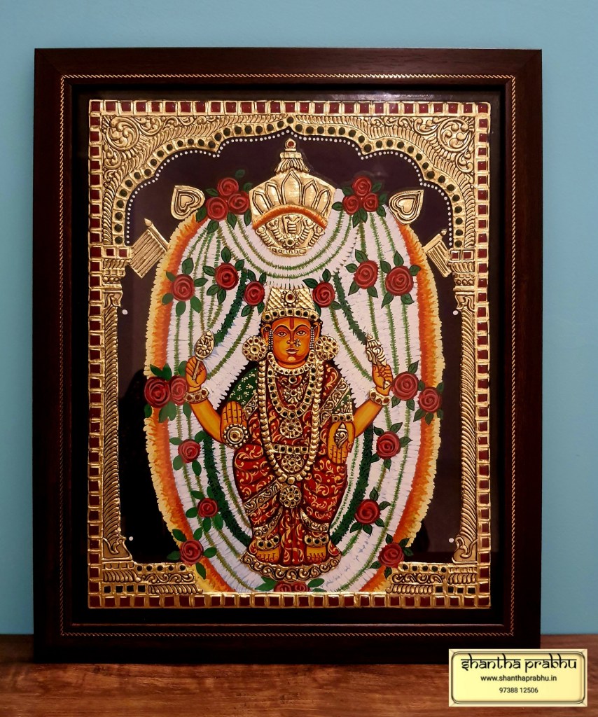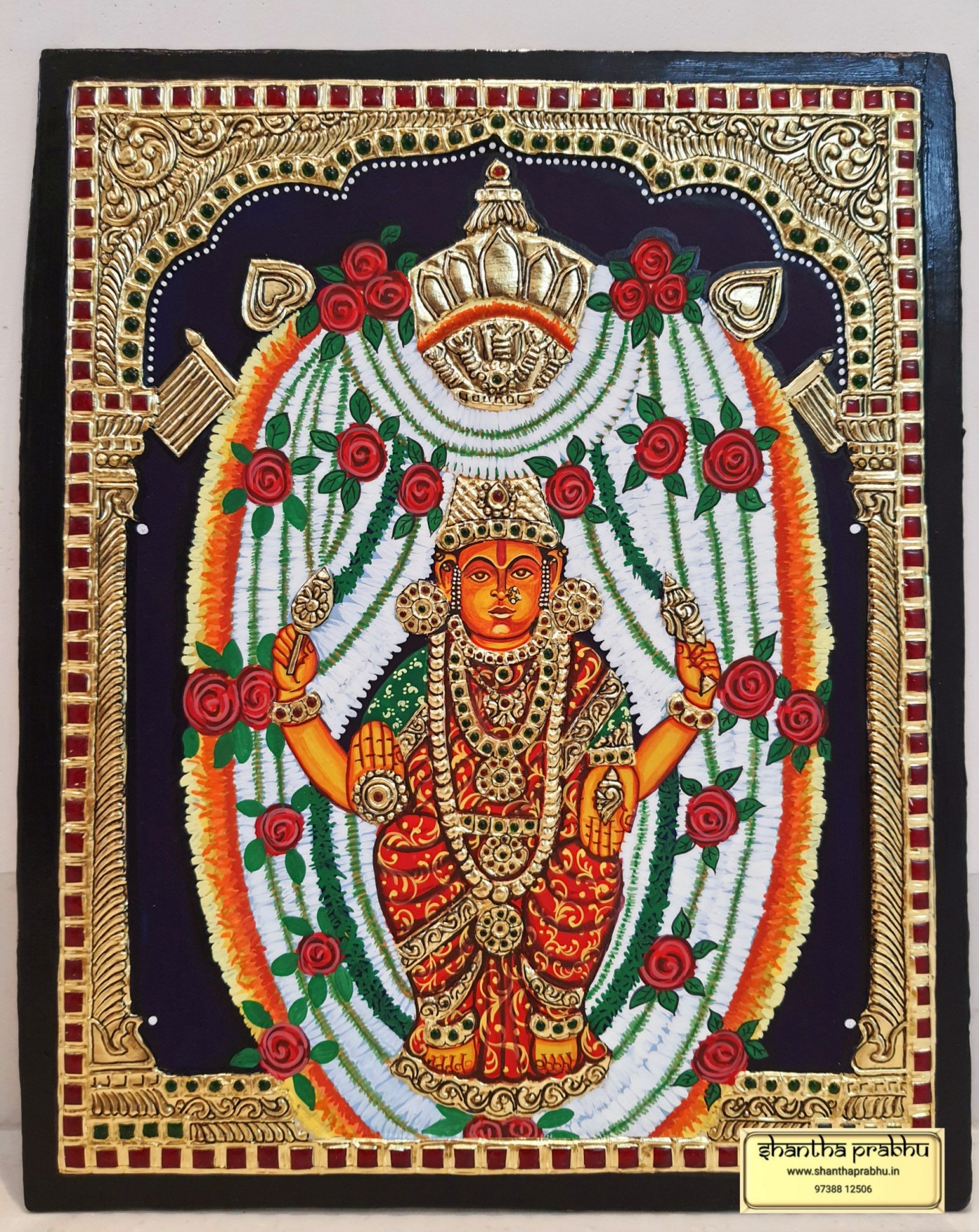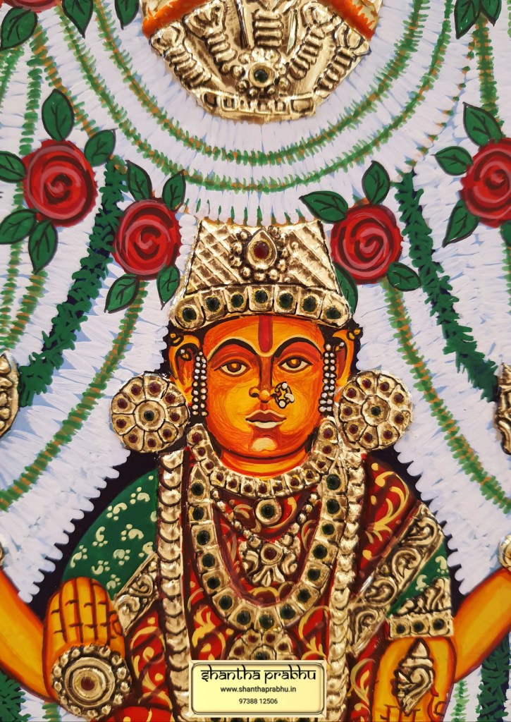 This is a 2D Super Embossed Thanjavur Painting of Kateel Durgaparameshwari Devi.
