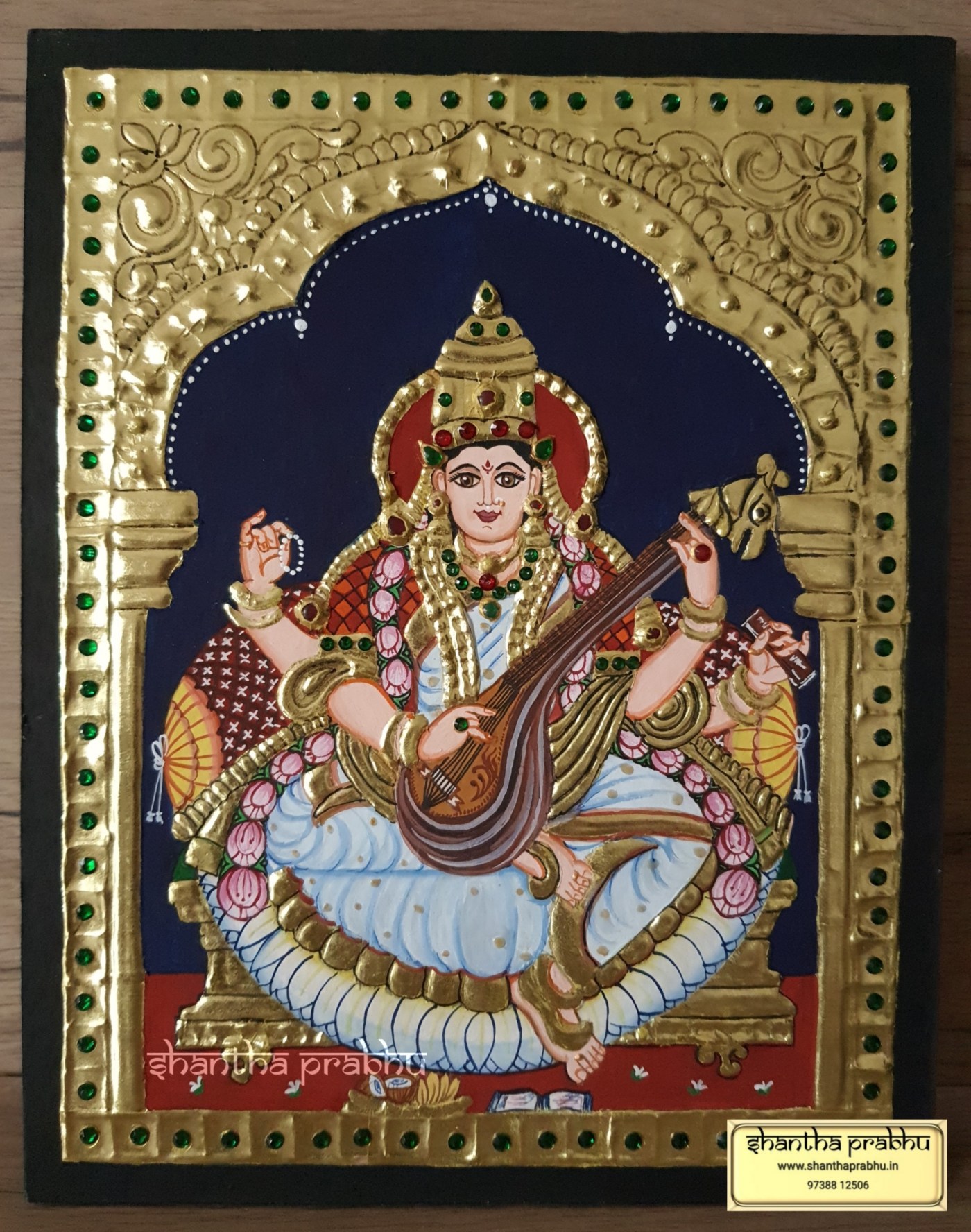 This is a 2D Tanjore Painting of Devi Saraswathi
