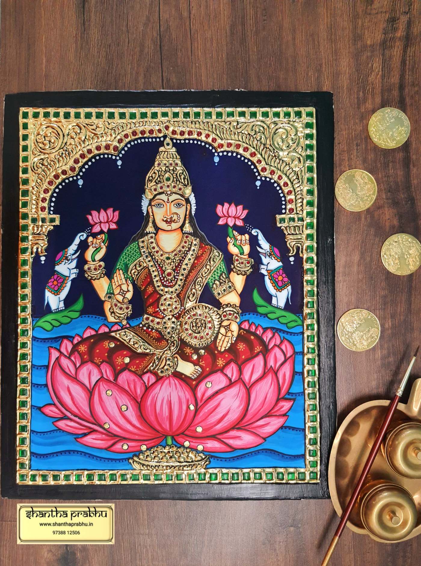 This is a 2D Tanjore Painting of Goddess Lakshmi.