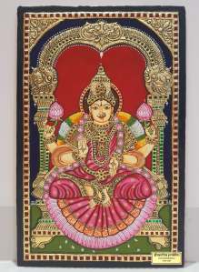 This is a 2D Tanjore Painting of Goddess MahaLakshmi.
