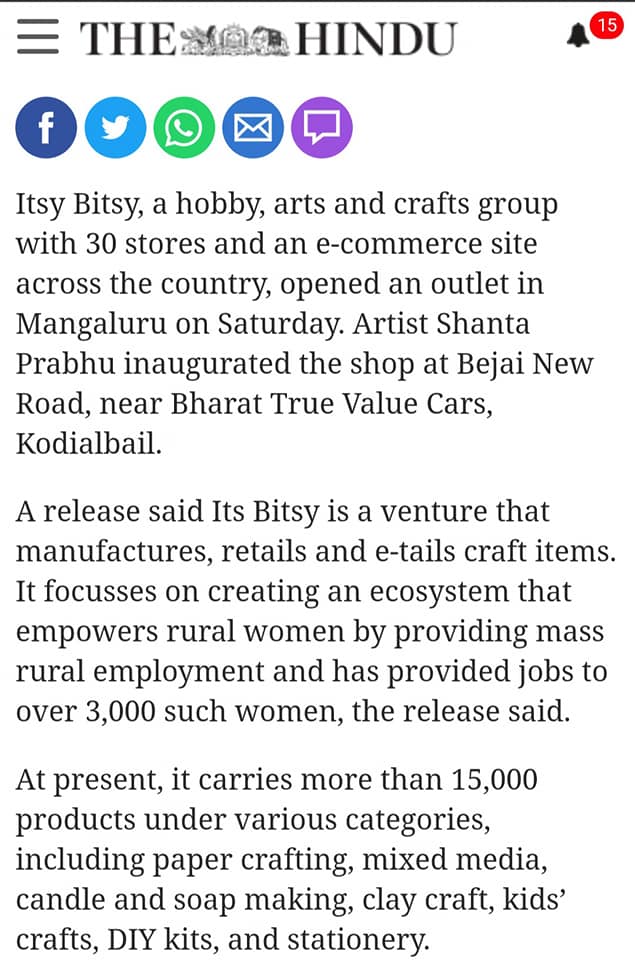 The Hindu mentions details about Itsy Bitsy’s first store in Mangalore and Inauguration details where I was invited as the chief guest for the Ribbon Cutting ceremony.