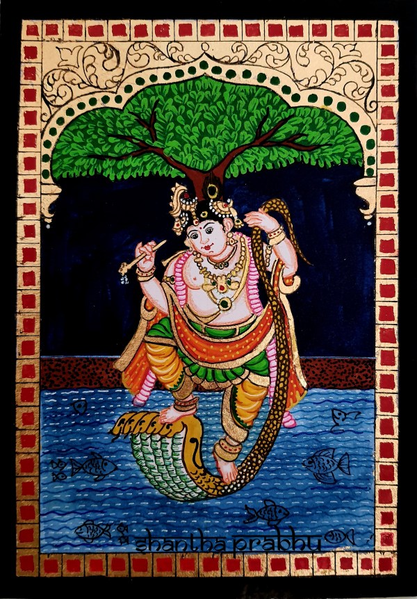 TITLE: Kaaliya Mardhanam Krishna An Ethnic Fusion Painting of Little Krishna SIZE: 21 x 15 cm PRICE: Rs. 2,500
